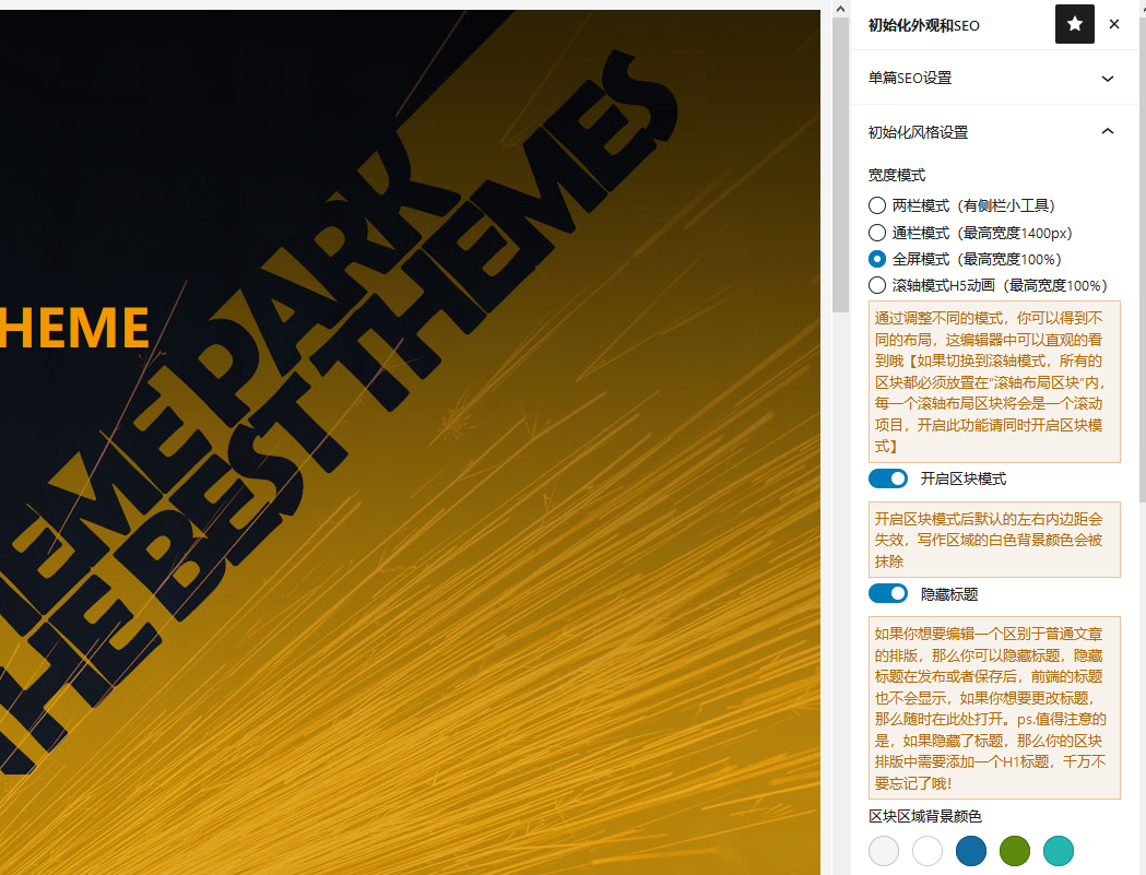 现在不仅仅是在首页,你可以在任意的页面和文章页使用区块进行排版制作你的落地页或者更丰富的产品介绍页,在WEB主题公园的主题中,你甚至可以挂载区块模板在导航、分类列表和小工具上